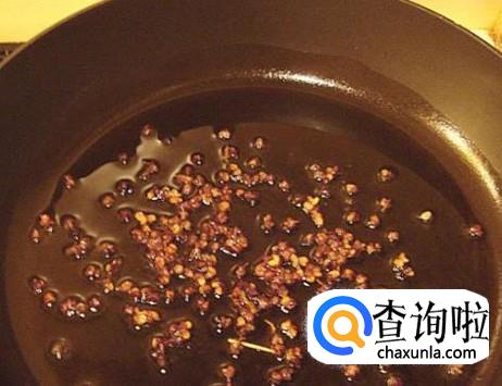 锅中放入食用油,烧热后,放入花椒,炸出香味。