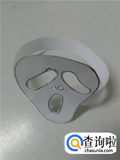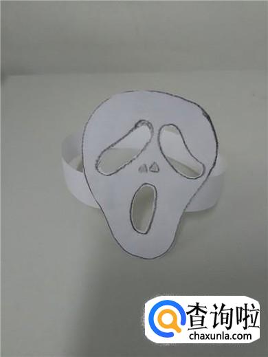 把长长的纸条粘在骷髅脸部的背面,骷髅面具就做完了。