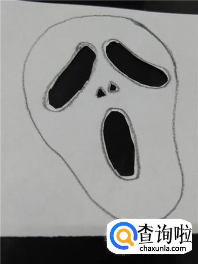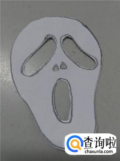 再用剪刀将骷髅脸部轮廓剪下来。