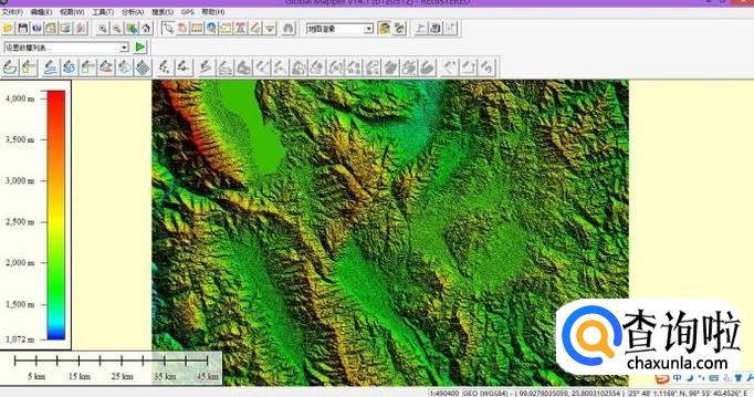 在左上角属性那里,点击高程,如图所示。