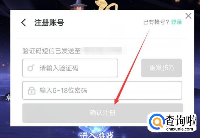 进入下一页面之后,输入验证码和想要设置的密码,点击“确认注册”即可。