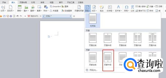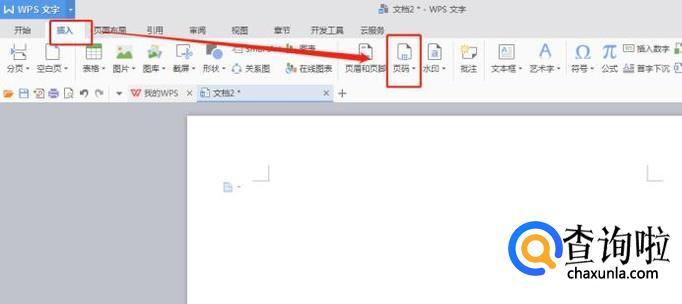 点击文档上方导航栏目中的“插入”选项,然后找到“页码”开始文档页码的设置!