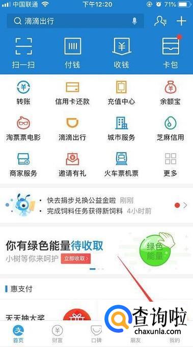 打开支付宝APP,进入首页后,点击右下角“我的”