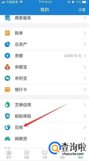 进入我的页面后,把页面往下拉,找到“花呗”,点击进入花呗页面。