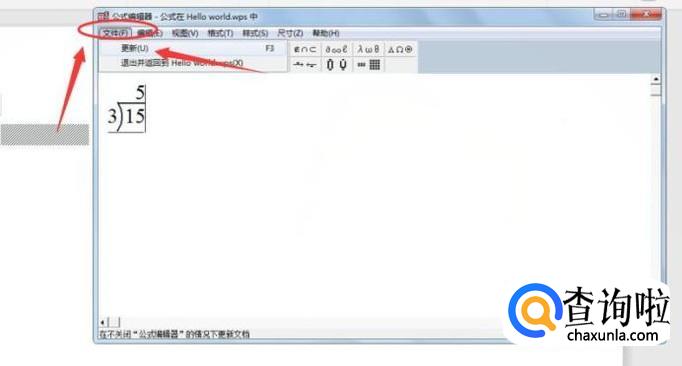 然后点击【文件】,在弹出的下拉菜单中点击【更新】即可,如下图所示: