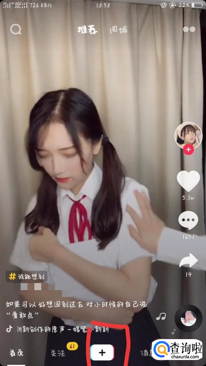 打开抖音,直接点击下方中间的加号进行拍摄。