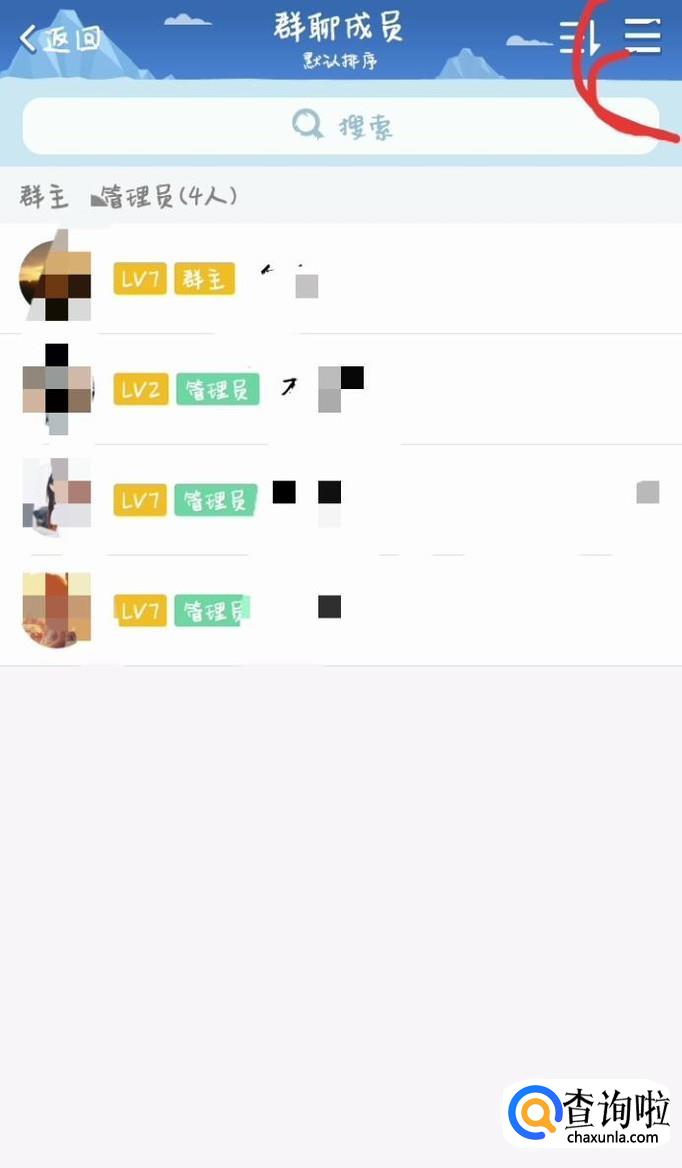 打开之后,点击右上方,便进入了资料,然后点击群成员那里即可。