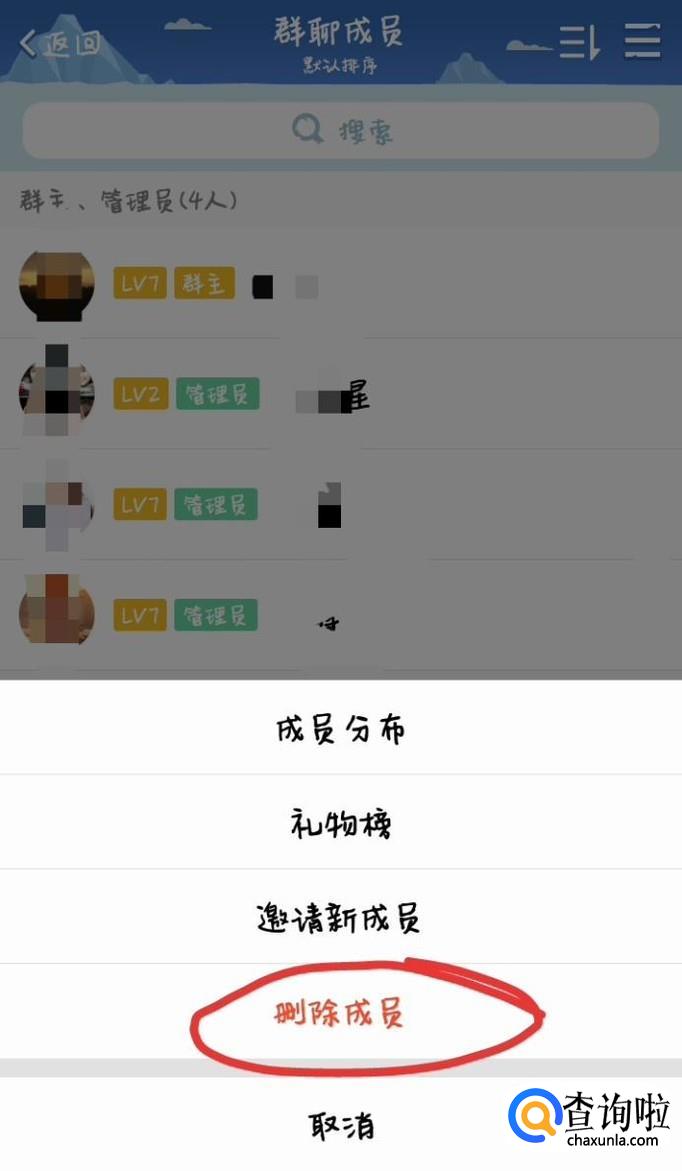 然后就会弹出删除群成员,手机QQ删除群成员就完成了,其实很简单的。