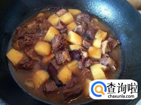 牛肉煮到软烂的时候,切点土豆块放进去,然后加点生抽继续煮。