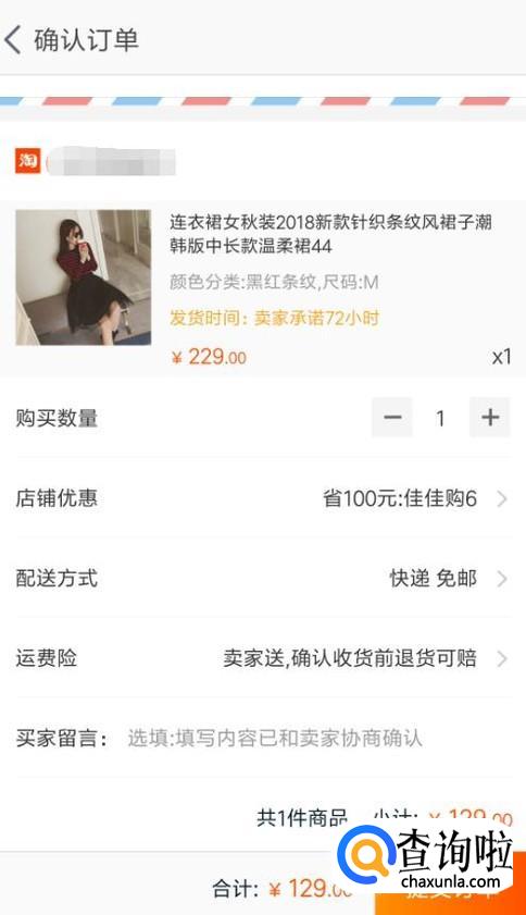 选择好尺码信息以后,进入购物车,订单结算页面如下,这样隐藏的优惠券就被使用了