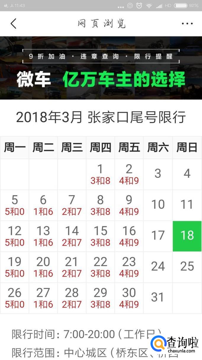 2018张家口市最新限行限号规定是怎样的