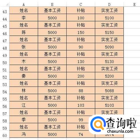 比如下图中的表格;隔行删除“姓名”这一行。只保留第43行的这一行姓名。