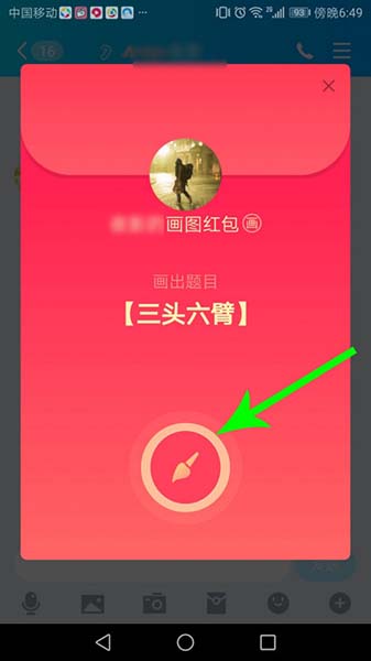 打开qq点击三头六臂画图红包,然后点击画笔。