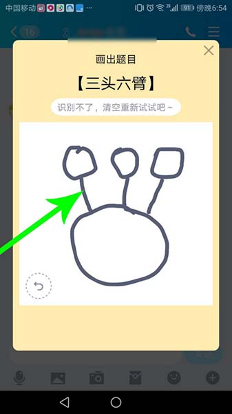 打开qq点击三头六臂画图红包,根据图片画出后等待系统识别,一次不行就多画几次就好了。