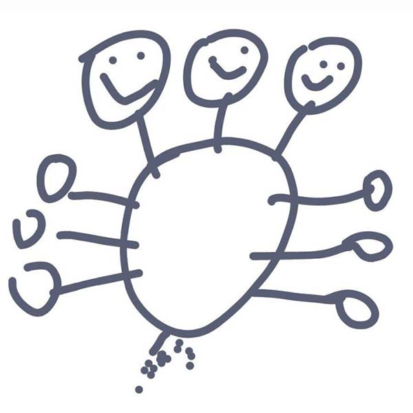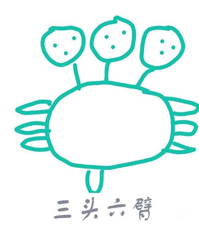 在肚子左侧画出三只胳膊。