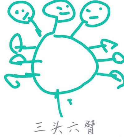 在肚子右侧画出三只胳膊,画完之后就成功画出三头六臂了。