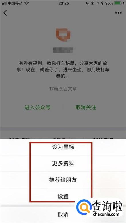 在这里我们可以对公众号进行取消关注或者是删除。