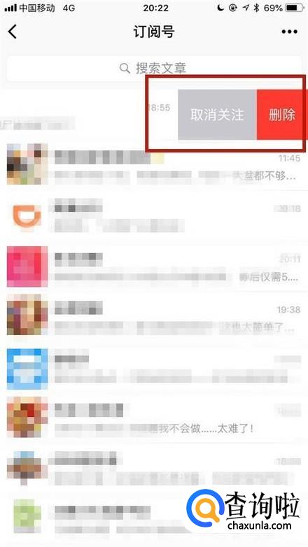 然后选择一个订阅号往左左滑动,如下图所示。