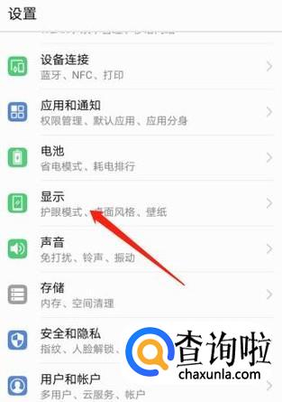 在“设置”菜单下点击“显示”,然后点击“壁纸”。