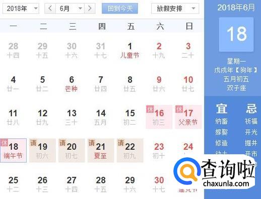 2018年的端午节是阳历6月10日,这天是星期一,现在国家规定端午节是放假的,这点我们是需要知道的。