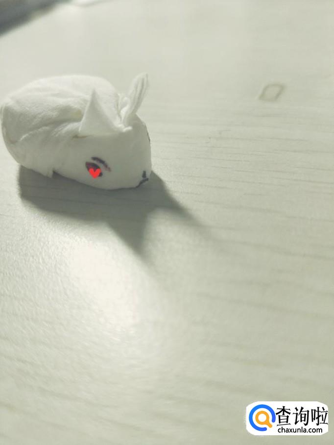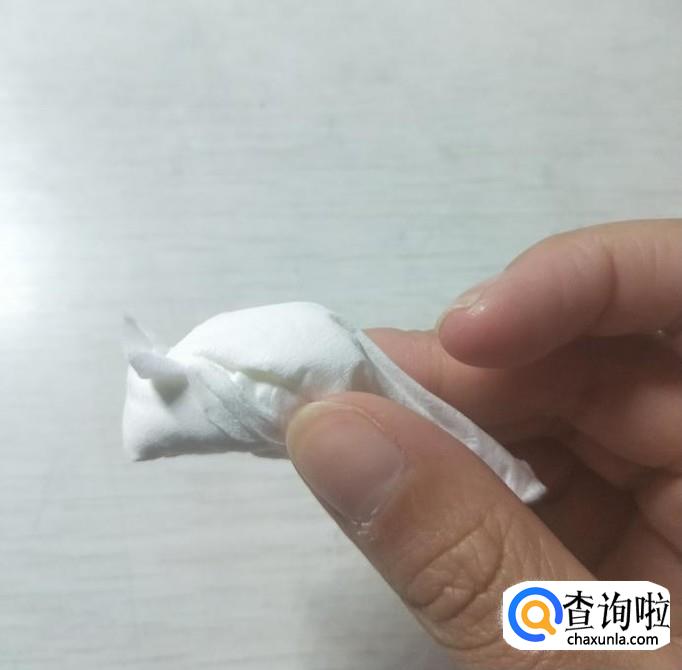 最后将三角藏在下面,让它不要散了,我们的小兔兔就做好了噢!
