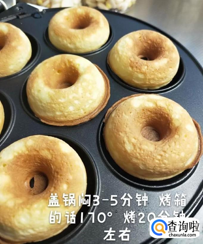 接着盖上盖子闷三到五分钟,如下图所示。小贴士:如果大家家中没有专门做甜甜圈的工具,可以把甜甜圈放到烤箱中,开170°的火烤20分钟左右,也是可以的。