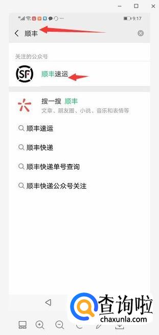 在微信手机端输入顺丰,找到顺丰快递的微信公众号