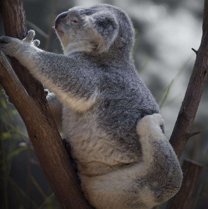 吃桉树叶会中毒,成年树袋熊适应了这毒性,但小树袋熊怎么办?小树袋熊会否中毒死亡?树袋熊为了帮助小树袋熊适应这进程,母树袋熊会从肓肠中排出一种半流质的软质食物让小树袋熊采食,帮助小树袋熊消化桉树叶毒性,直到其可以完全地采食桉树叶为止!