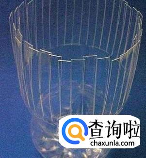 留下下面的部分,接着用剪刀顺着瓶口,竖着往下剪,剪成条状,剪到离瓶底还有10厘米的地方就收刀。