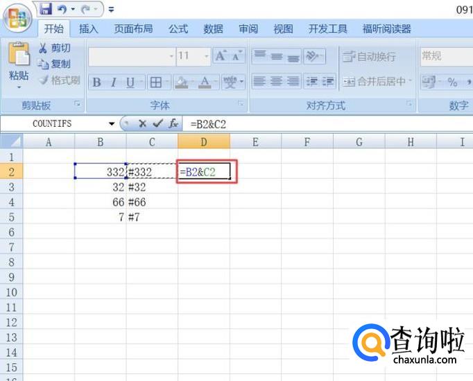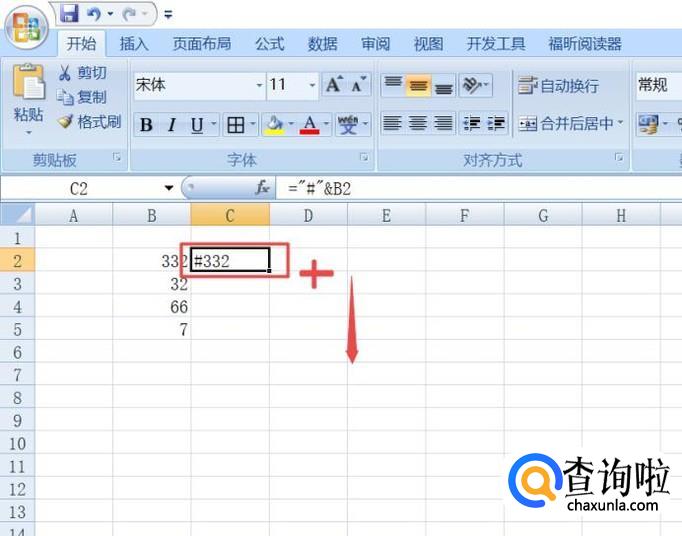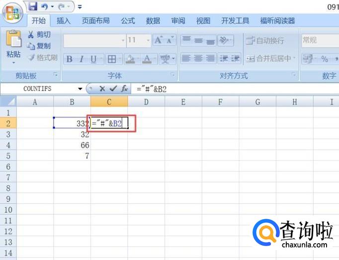 然后我们在图示中的单元格中输入="#"&B2,之后按回车键;