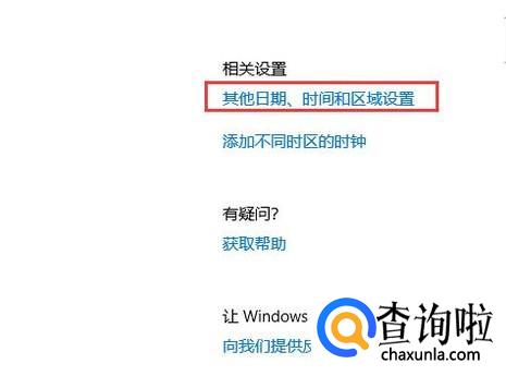 在右侧相关设置里选择其他日期、时间和区域设置。