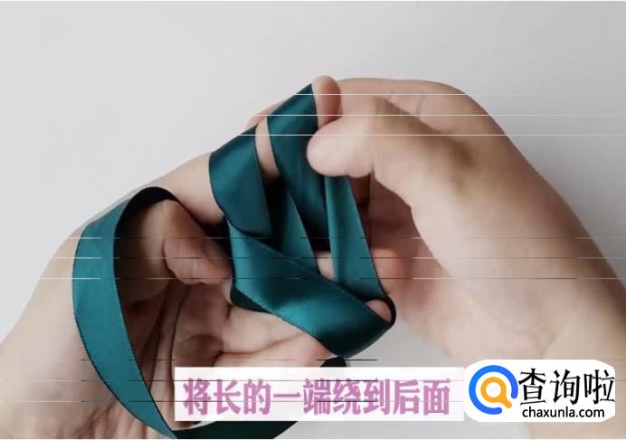 将较长的一段丝带从前面绕到后面,绕的时候注意缠绕在手指上的丝带都要绕过。
