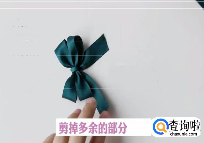 将整理好的蝴蝶结从手上取下来,然后将多余的部分减掉。