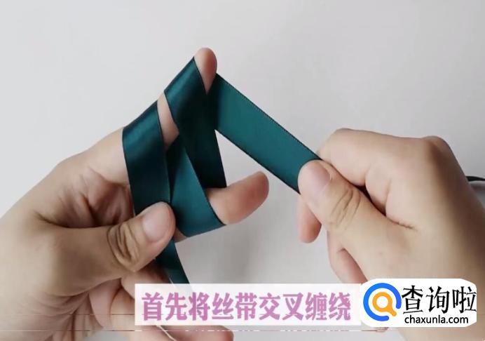 首先将准备好的丝带像下图一样交叉缠绕在手指上。