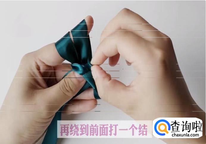 将刚刚绕到后方的丝带在绕到前面来,并且打一个结。