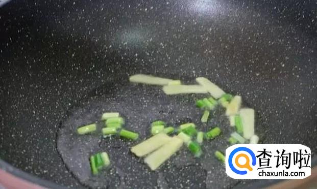 然后我们往锅里放入油,油烧热以后放入葱和姜进行爆香,如下图所示