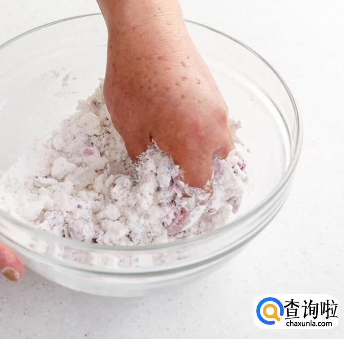 首先我们取适量的糯米粉,粘米粉和适量的白砂糖,用手搅拌均匀,然后放入适量的温水,用手反复的进行揉搓,水不要太多,感觉可以粘在一起,又手感干干的即可