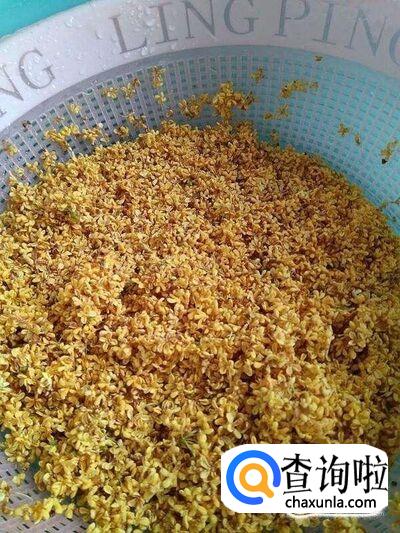 然后取适量的桂花干,用清水冲洗一下,沥干表面的水分备用