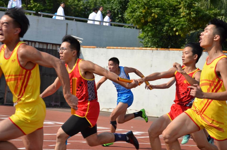 4、场上英姿显自豪,脚下步伐在飞奔。你们是骄傲,你们是自豪,跑道因你幻彩,面对红色跑道,你们挥洒自如,不惧一切冲向终点!