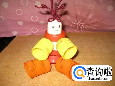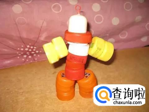 然后再来串胳膊,一边两个瓶盖就行,在合适的部位拧一下,就好了。