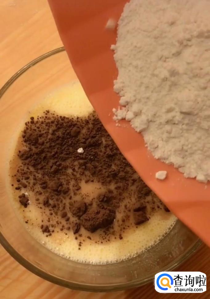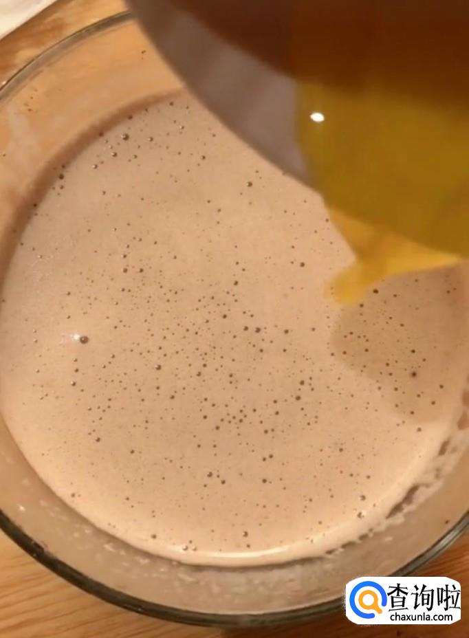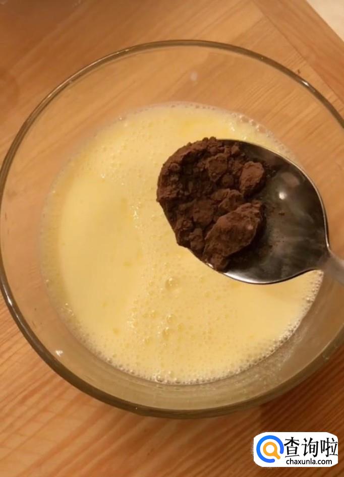 然后我们再打入一个鸡蛋,搅拌均匀,再放入5g可可粉