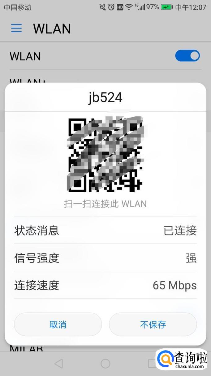 点击该网络,可以看到弹出一个对话框,上面显示扫一扫连接此wifi,保存此二维码。