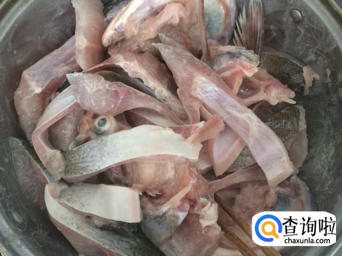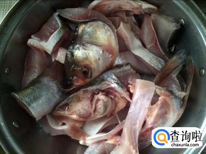 将白鲢鱼两侧鱼肉片下后,骨头后白肉分别切小块。加适量盐和白酒腌二十分钟。
