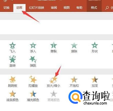 然后再点击导航栏上的动画,直接选择放大缩小效果的动画,直接进行选择即可,这样就能直接进行动画设置了。