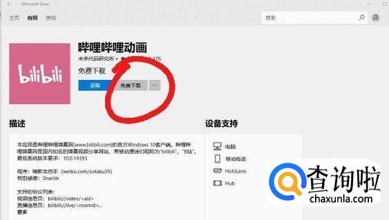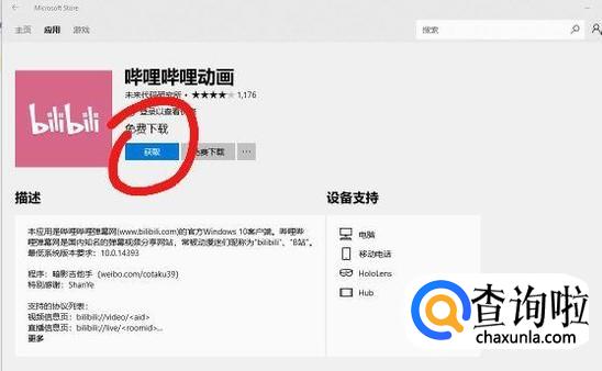 输入“哔哩哔哩”后,会出现相应的软件,找到要下载的软件,点击获取