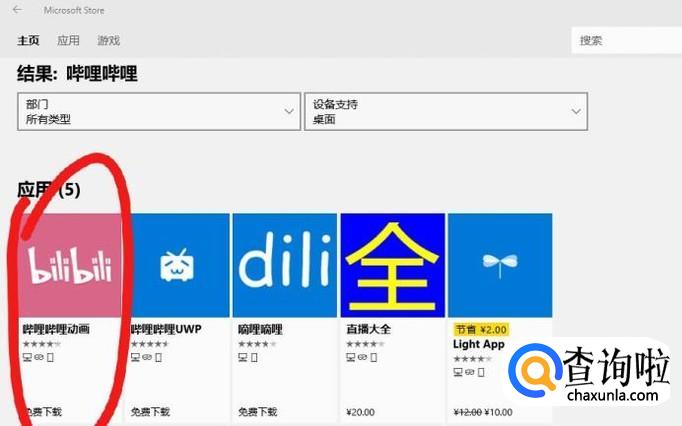 首先,打开win10系统的软件商店,在里面输入“哔哩哔哩”