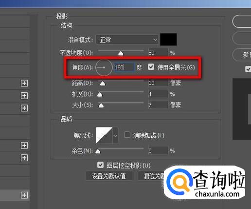 再设置角度为180;勾选:全局光