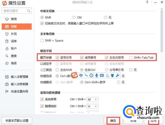 搜狗输入法的翻页键是什么,怎么设置翻页键?