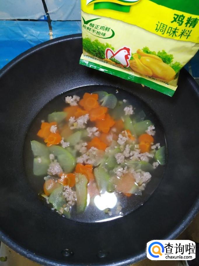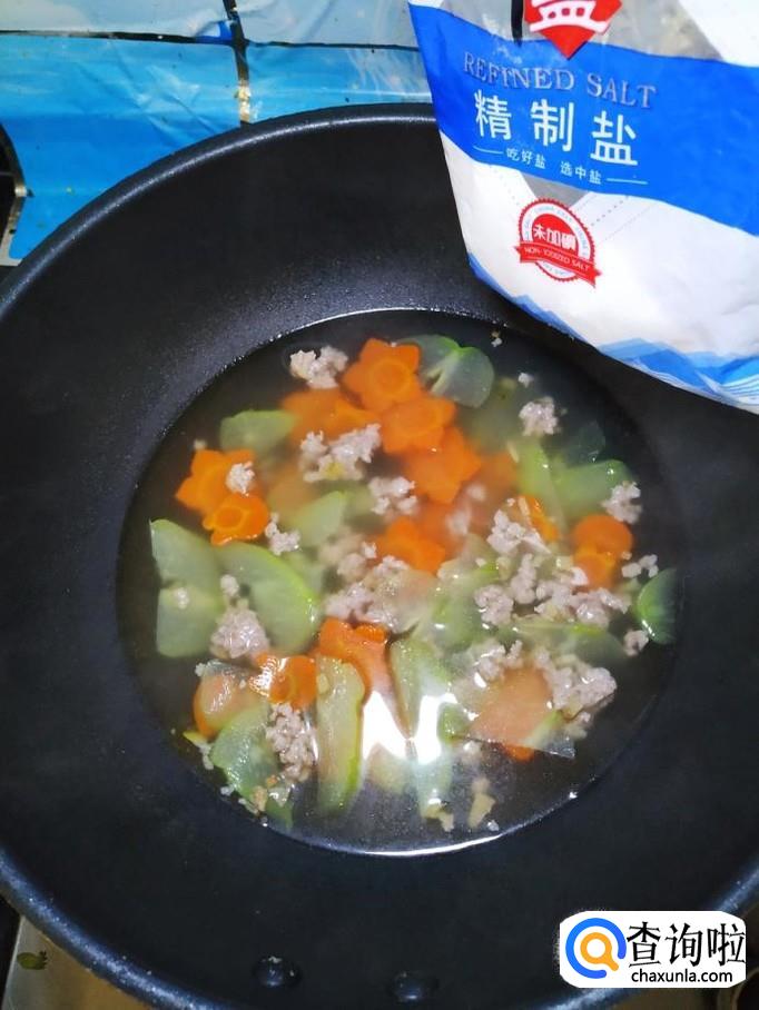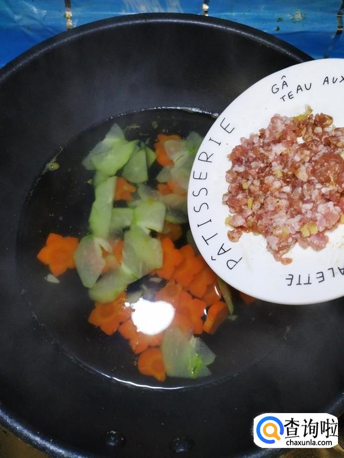 然后将腌制好的肉末倒入锅中,煮一下,再煮五分钟左右。