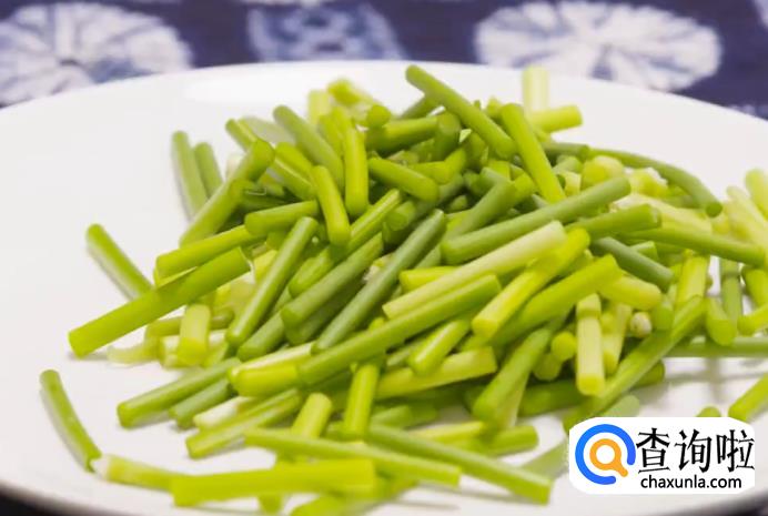 将蒜芯洗净,掐去头,切成段。